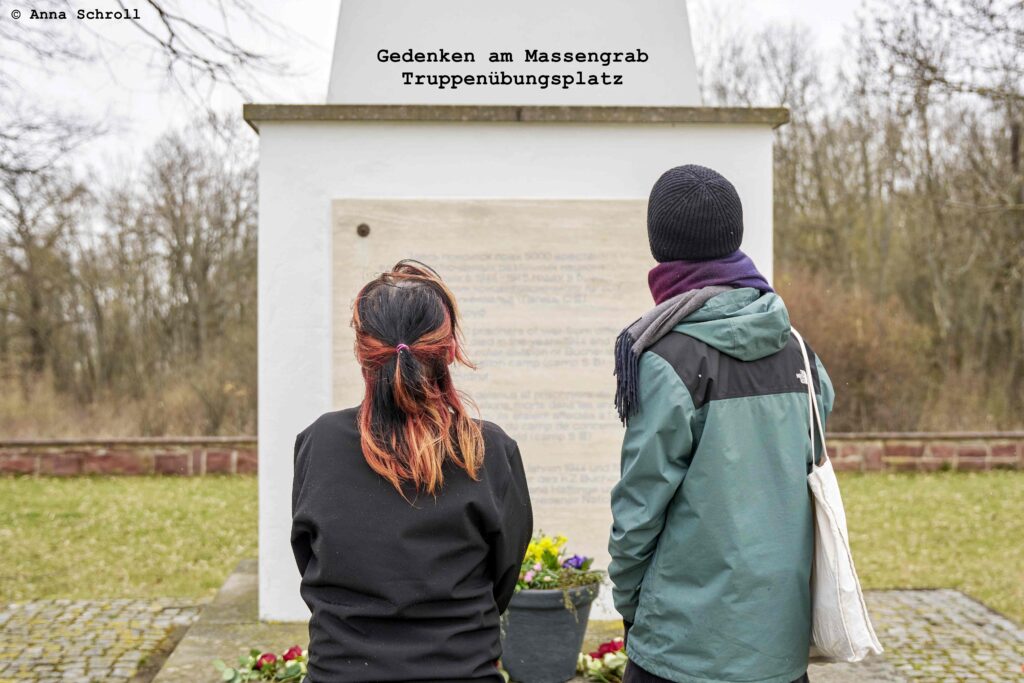Am Ende wurde das Programm des Tages so gestaltet, dass es am frühen Vormittag mit Bussen auf den Truppenübungsplatz ging und dort ein Rundgang am Nordlager sowie am Massengrab stattfand, um einen Einblick in die Geschichte des Konzentrationslagers zu erhalten. Unterstützt wurde der Rundgang mit bewegenden Gedenkreden am Nordlager sowie mit einem individuellen Gedenken am Obelisken, wo es die Möglichkeit gab, Rosen niederzulegen. Nach diesem emotionalen Ereignis ging es mit den Bussen ins Schloss Ehrenstein, wo eine Mittagspause stattfand und die ersten interessanten Gespräche geführt wurden. Nach der Pause ging es weiter mit einer Podiumsdiskussion, mit dem Thema „Wie wollen wir hier gedenken- heute und in der Zukunft?“. Danach fanden verschiedene Workshops statt, in denen es nicht nur theoretisch, sondern auch sehr praktisch zuging. Nach den Workshops gab es noch Möglichkeiten zum Austausch mit der Hilfe eines Vernetzungstisch, auf dem man seine Kontaktdaten hinterlassen konnte.
